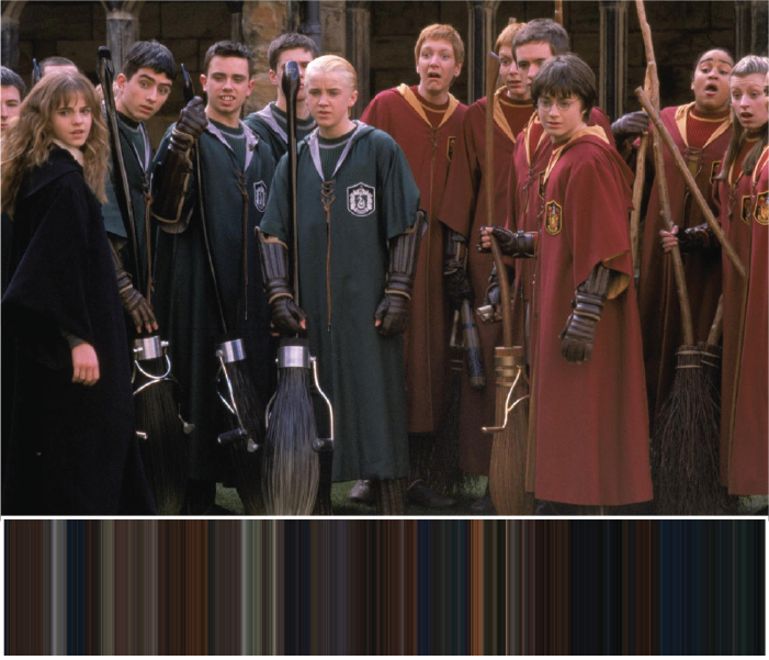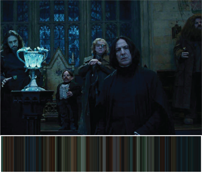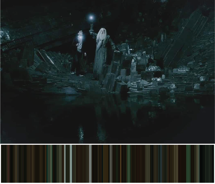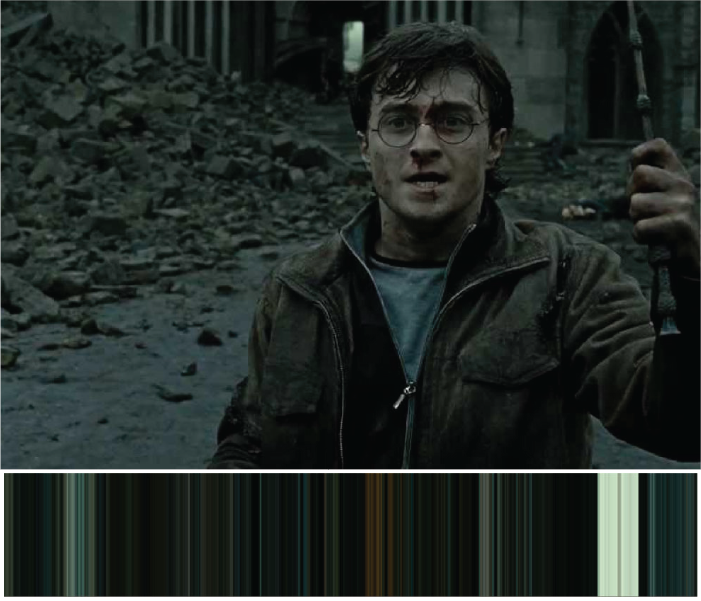 Harry Potter and the Deathly Hallows part 2 - The final battle between Voldemort and his army and Harry and his friends is the finale of this movie. The darkness of the war can be seen in the palette colours. The green in the palette is the colour of dark magic and the dark spells.